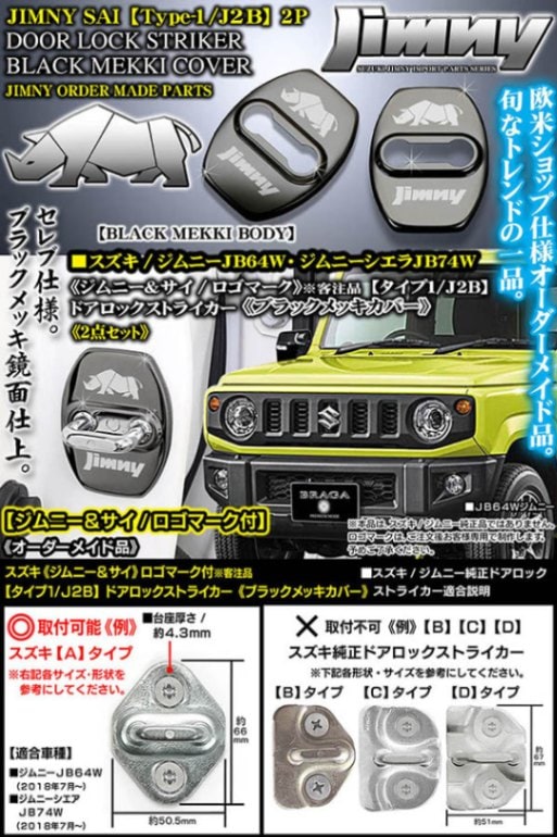 JB74Wジムニーシエラ【タイプ1/J1】[ジムニー/ロゴマーク付/客注品]2点セット/ドアロック ストライカー《メッキカバー》鏡...