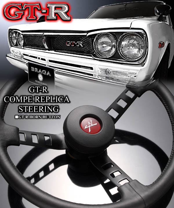 GT-R/ハコスカ/ダットサン コンペ レプリカ ステアリング【ホーンボタン/パッド付/DATSUNキーホルダー付】旧車/絶版車ウ...