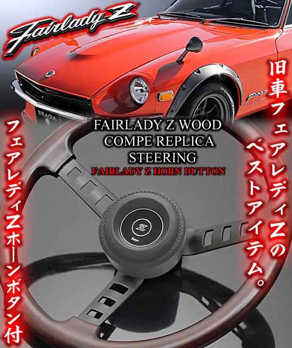 フェアレディZ コンペ レプリカ 天然ウッド ステアリング【Zホーンボタン/パッド付・DATSUNキーホルダー付】旧車,絶版車ハン...