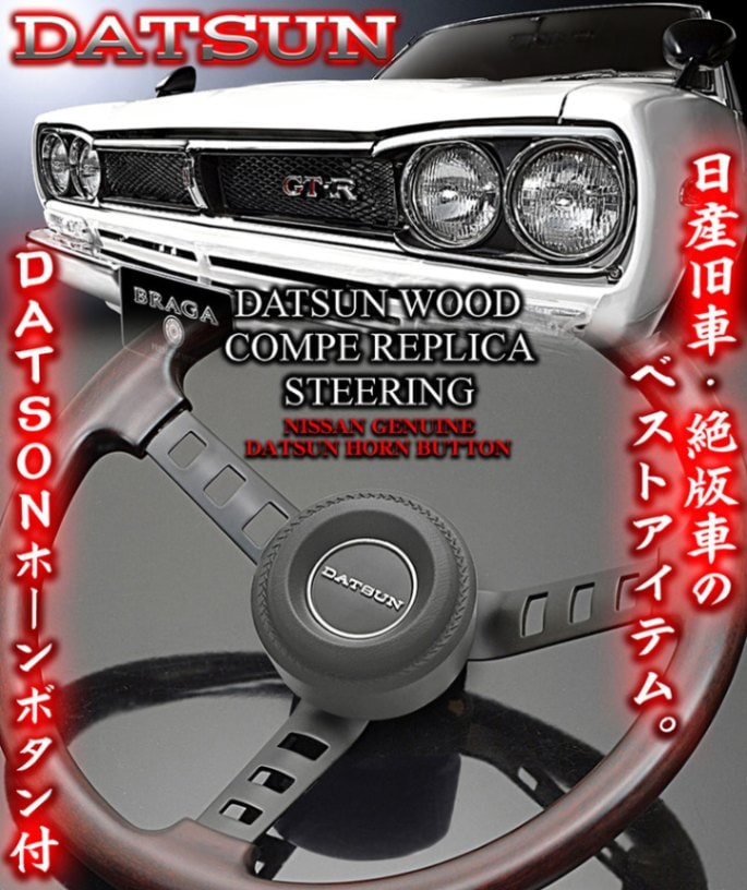 GT-R/ジャパン/スカイライン/天然ウッド コンペ レプリカ ステアリング【Rホーンボタン付/DATSUNキーホルダー付】旧車/...