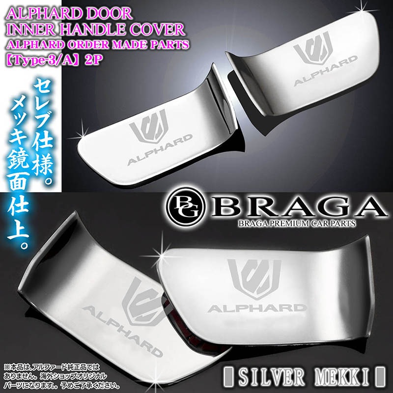 30系アルファード前期/後期【タイプ3/A】ALPHARDロゴマーク付/客注品/車内ドア インナーハンドルカバー《シルバーメッキ》...