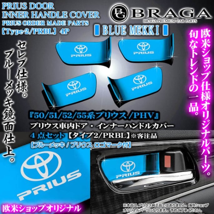 50系プリウス/前期/後期【タイプ2/PRBL】PRIUSロゴ&トヨタマーク付/客注品/車内ドア インナーハンドルカバー《ブルーメ...