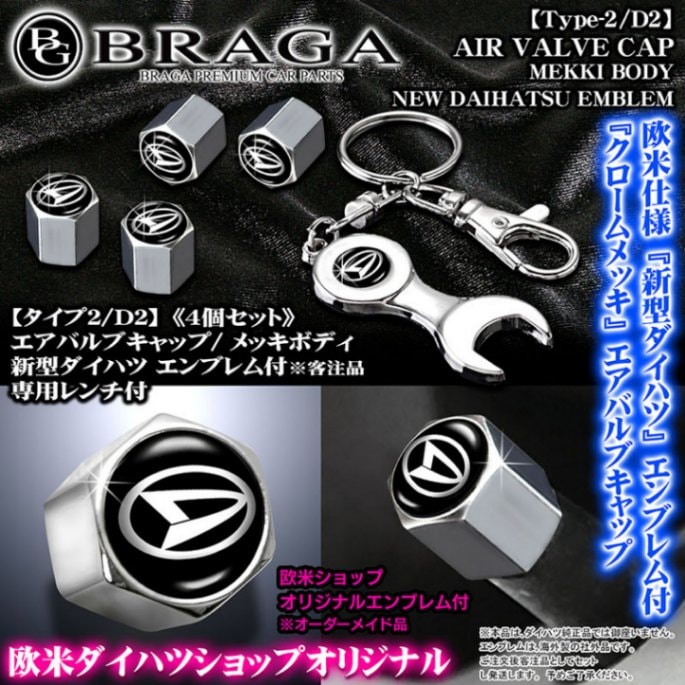 新型ダイハツ エンブレム付 客注品 メッキボディ エアバルブ キャップ【タイプ2/D2】4個セット 専用レンチ付 汎用品 欧米仕様...