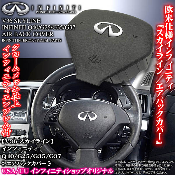【エアバックカバー/ブラック】クーペ/V36スカイライン/欧米仕様Q60/G37インフィニティINFINITIパーツ/取説付/ブラ...