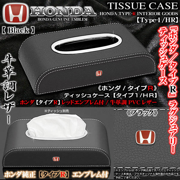 タイプ1/HR《ホンダ/タイプR》ブラック/ティッシュケース/牛革調PVCレザー/タイプR レッド純正エンブレム付/欧米仕様客注品...