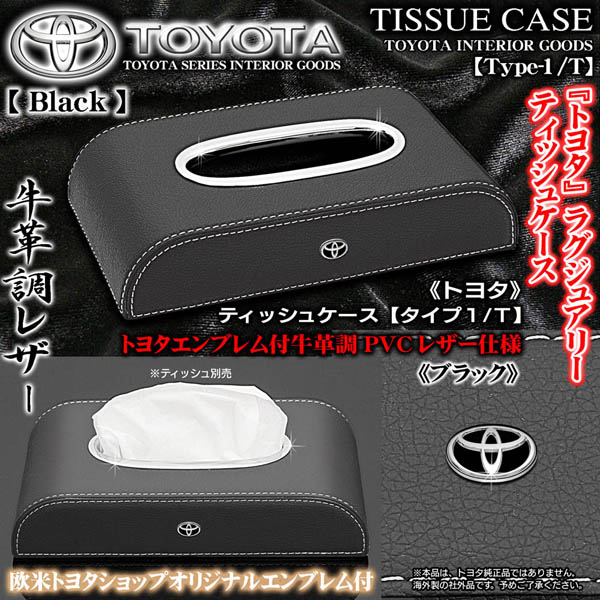 タイプ1/T《トヨタ》ブラック/ティッシュケース/牛革調PVCレザー/トヨタTマーク メッキ&ブラック エンブレム付/欧米仕様客注...