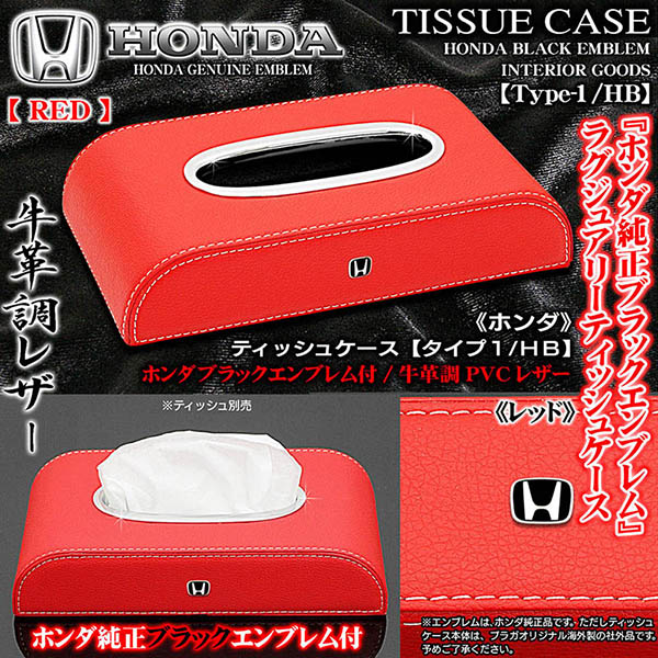 タイプ1/HR《ホンダ/タイプR》レッド/ティッシュケース/牛革調PVCレザー/タイプR レッド純正エンブレム付/欧米仕様客注品/...