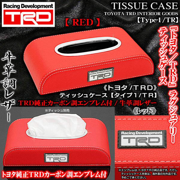 タイプ1/TR《トヨタTRD》レッド/ティッシュケース/牛革調PVCレザー/トヨタTRD純正カーボン調エンブレム付/欧米仕様客注品...