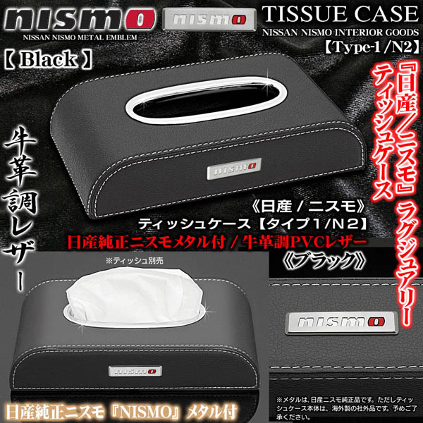 タイプ1/N2《日産/ニスモ》ブラック/ティッシュケース/牛革調PVCレザー/日産NISMO純正メタル付/欧米仕様客注品/ブラガ