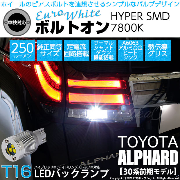 【即納】【メール便可】トヨタ アルファード[30系 前期モデル]対応 バックランプ用LED 車対応 LEDバルブ T16 ボルト...
