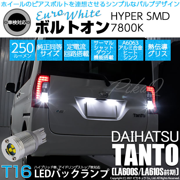 【即納】【メール便可】ダイハツ タントカスタム[L375S/L385S]対応 バックランプ用LED T16 ボルトオンHYPER ...