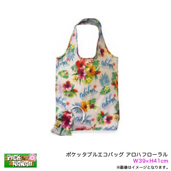 ポケッタブルエコバッグ アロハフローラル コンパクト W39×H41cm 買い物袋 折りたたみ ハワイアン雑貨 PICK The ...