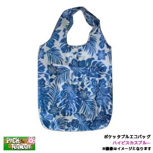 ポケッタブルエコバッグ 折りたたみ ハイビスカスブルー 買い物袋 H39×W41cm ハワイハワイお土産 アメリカ ハワイアン雑貨...