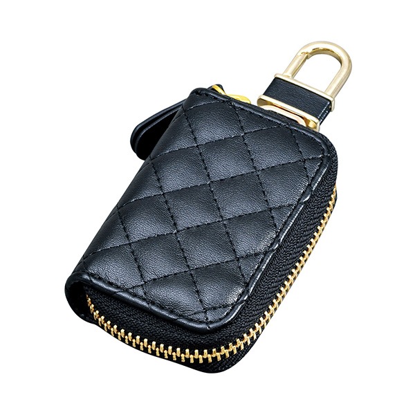 セイワ キルト スマートキーケース 鍵入れ ブラック コンパクト ミニポケット付 カラビナフック 落下防止 WA10