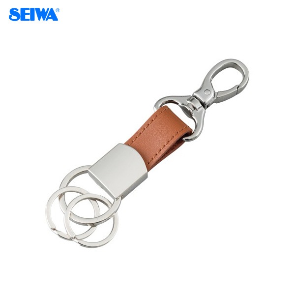 セイワ EGキーホルダープラス ブラウン キーリング カラビナフック 鍵 車のキー等 取り外し可能リング2個 ボンデッドレザー W...