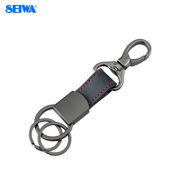 セイワ EGキーホルダープラス ブラック/レッドキーリング カラビナフック 鍵 車のキー等 取り外し可能リング2個 ボンデッドレザ...