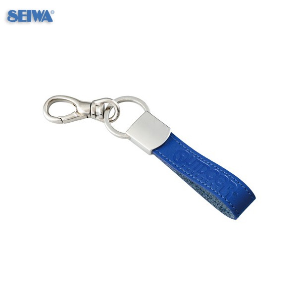 セイワ イージーキーホルダー for car キーリング 鍵 ボンデッドレザー ブルー 青 便利なカラビナフック金具付 OD38
