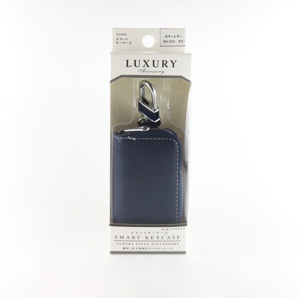 プラウド スマートキーケース レザー調 ネイビー 鍵入れ カラビナ チェーン付 小物入れ 便利 収納 ワンタッチ DI-512