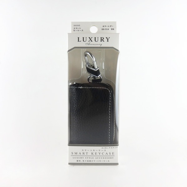 プラウド スマートキーケース レザー調 ブラック 鍵入れ カラビナ チェーン付 小物入れ 便利 収納 ワンタッチ DI-514