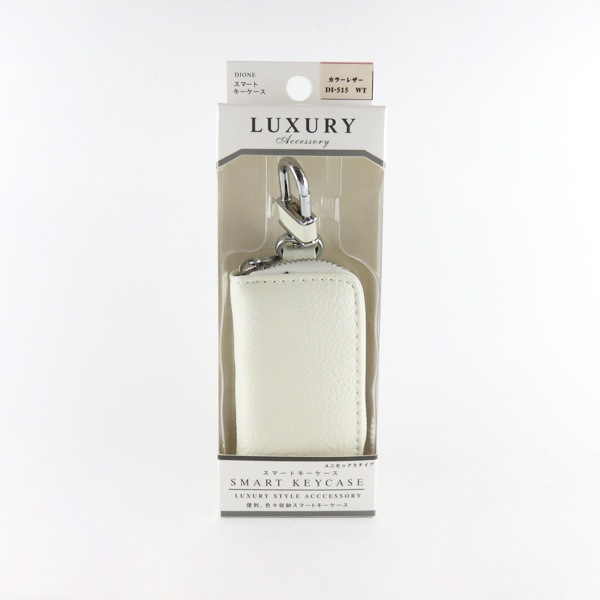 プラウド スマートキーケース レザー調 ホワイト 鍵入れ カラビナ チェーン付 小物入れ 便利 収納 ワンタッチ DI-515