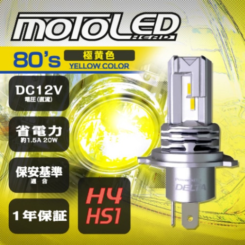 バイク用 旧車専用 MOTO LED ヘッド H4/HS1(1個入) 80’s イエローカラー ヘッドライト DC12V 3000...