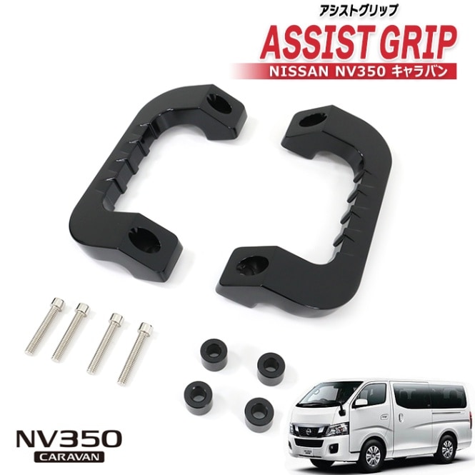 E26 キャラバン / NV350キャラバン アルミ アシストグリップ ブラック 運転席 助手席 2P グラブ ハンドル 純正交換...