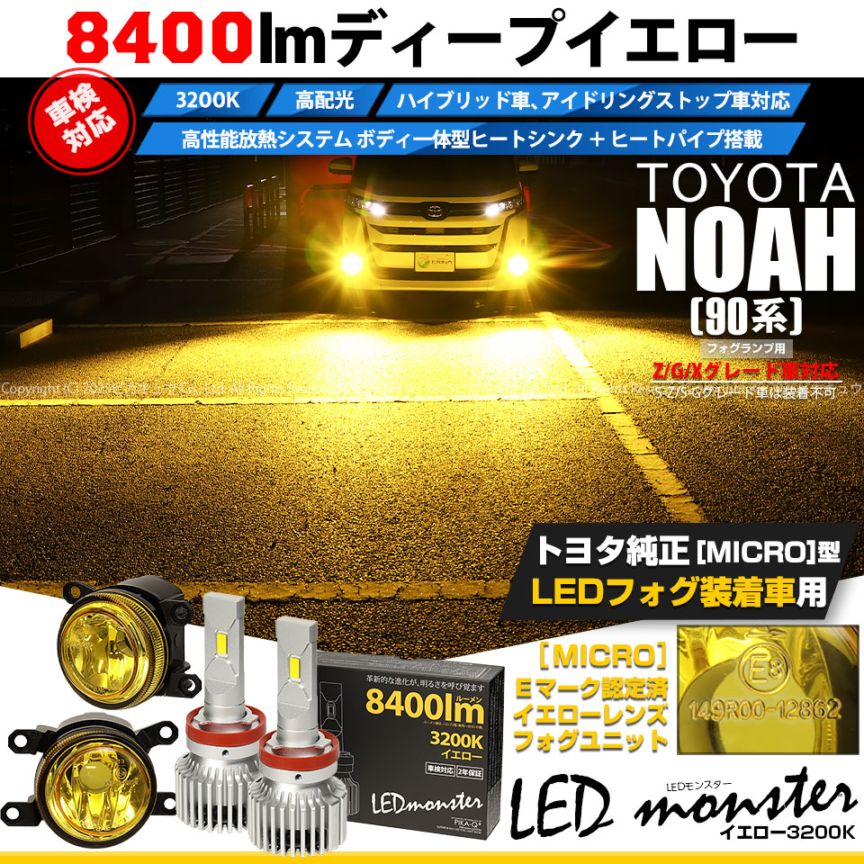 【即納】トヨタ トヨタ ノア[90系 Z/G/Xグレード]対応 [MICRO型]イエローガラスレンズフォグランプユニット付 LED...