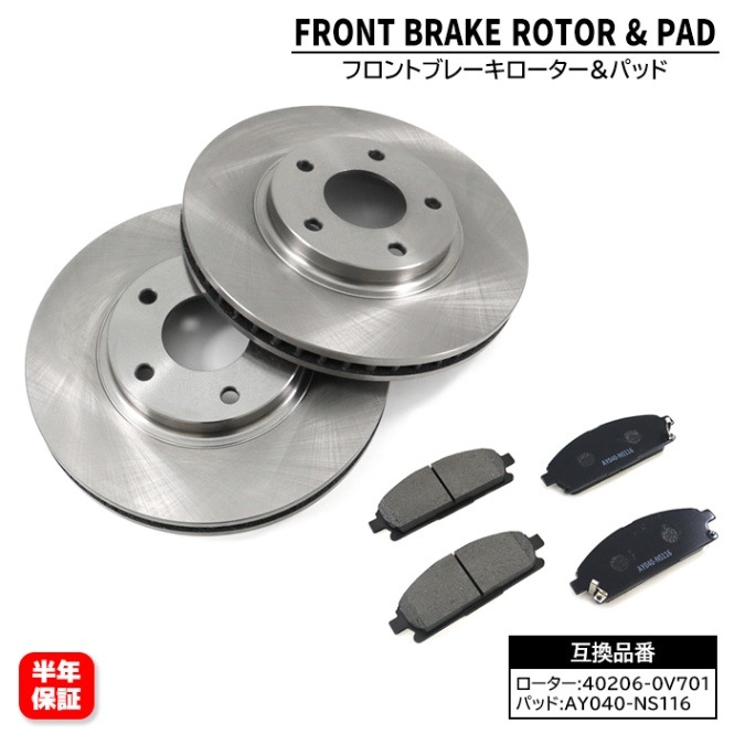 フロント ブレーキローター&ブレーキパッド 前 左右 40206-0V701 AY040-NS116 互換品 1ヵ月保証 日産 エ...