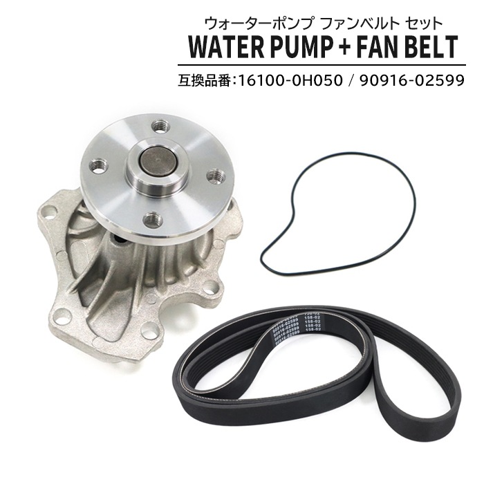 ウォーターポンプ & ファンベルト セット 16100-0H050 90916-02599 互換品 6ヵ月保証 トヨタ 20系 ア...