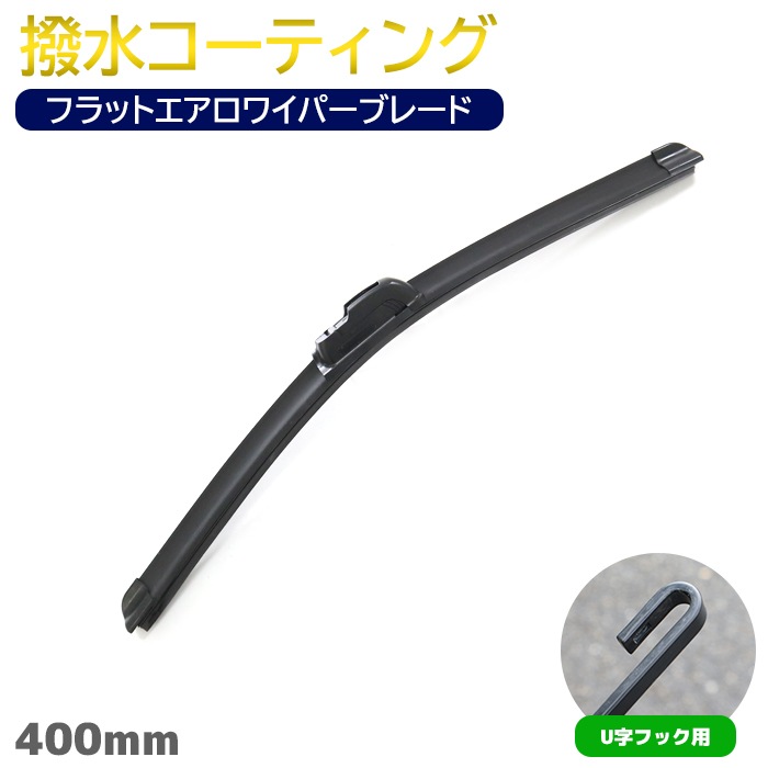 撥水 フラットエアロ ワイパーブレード U字フック 400mm 1本 ワイパー交換 サイズ エアロワイパー 簡単交換 撥水ワイパー...