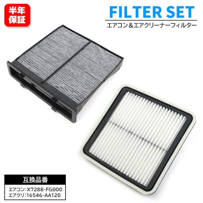活性炭エアコンフィルター & エアクリーナーフィルター セット 1台分 X7288-FG000 16546-AA120 互換品 半...