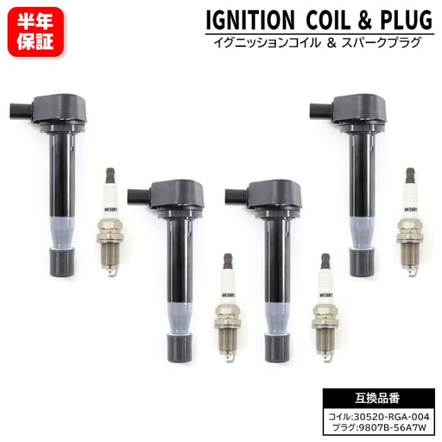 イリジウム スパークプラグ & イグニッションコイル 4セット 30520-RGA-004 90048-51160 互換品 6ヵ月...