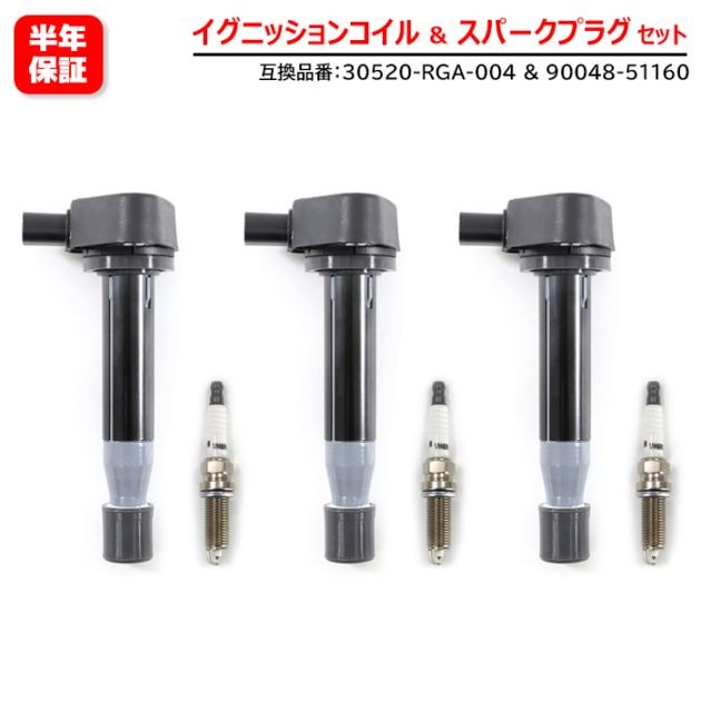 イリジウム スパークプラグ & イグニッションコイル 3セット 30520-RGA-004 90048-51160 互換品 6ヵ月...