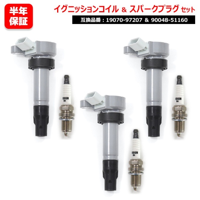 イリジウム スパークプラグ & イグニッションコイル 3セット 90048-51214 19500-B2051 互換品 6ヵ月保証...