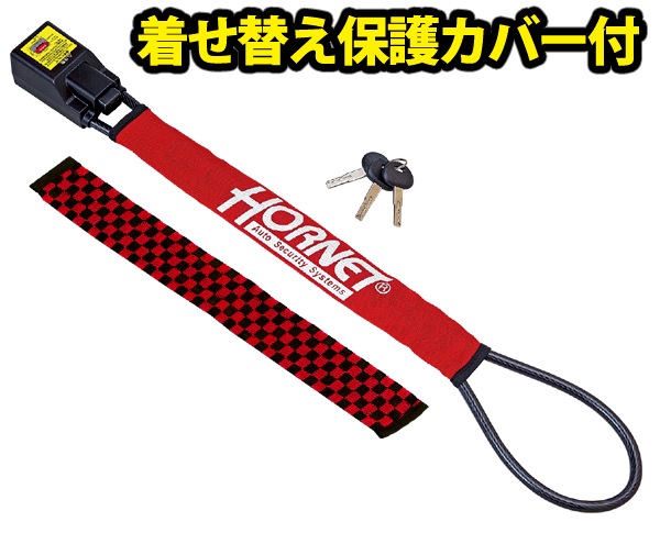 着せ替え保護カバー市松模様 赤黒付き!加藤電機 HORNETメタルワイヤー式ハンドルロック LH-3SR-R