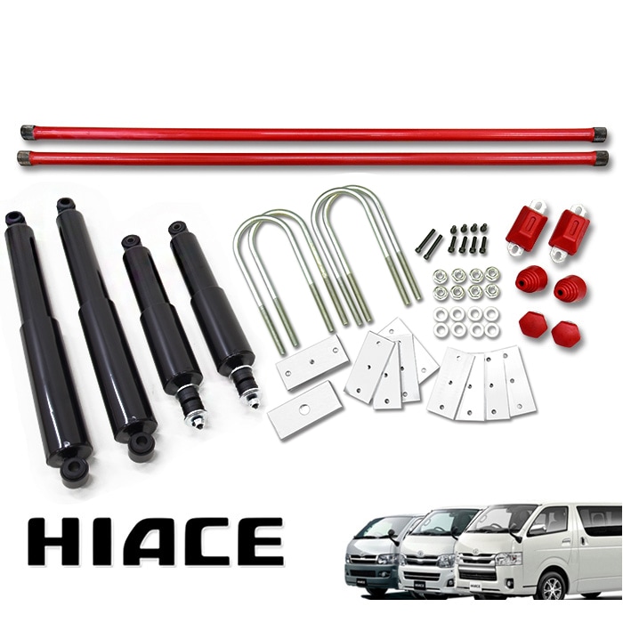 200系ハイエース 2WD 調整式 ローダウン 1台分セット フルキット ブラック ショート ショックアブソーバー ダウンブロック...