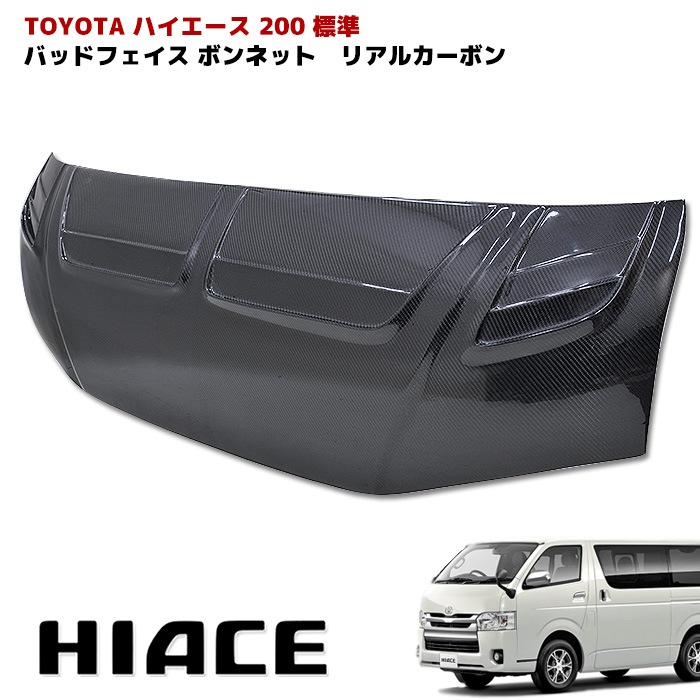 ハイエース 200系 標準 バッドフェイス ボンネット リアルカーボン ダクト ボンネット 綾織 ウェットカーボン