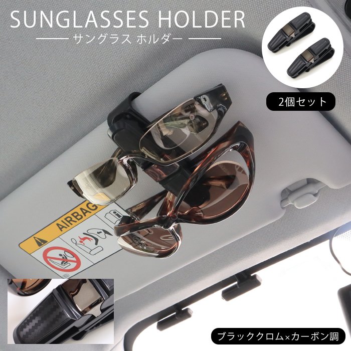 車用 サングラスホルダー クリップ ブラッククロム × カーボン調 2個セット 新品 サンバイザー メガネ 眼鏡 カード チケット...