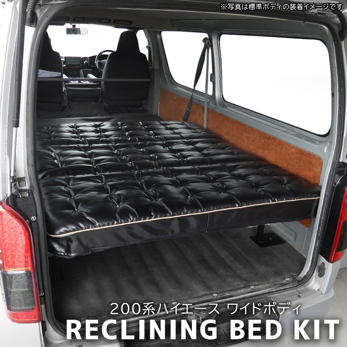 200系 ハイエース バン ワイド ダブル リクライニング ベッドキット 新品 ボタン留め PVCレザー ブラック 高さ調節 トヨ...