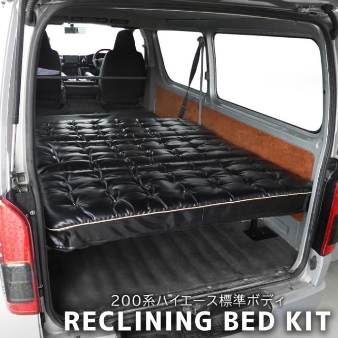 200系 ハイエース バン 標準 ダブル リクライニング ベッドキット 新品 ボタン留め PVCレザー ブラック 高さ調節 トヨタ...