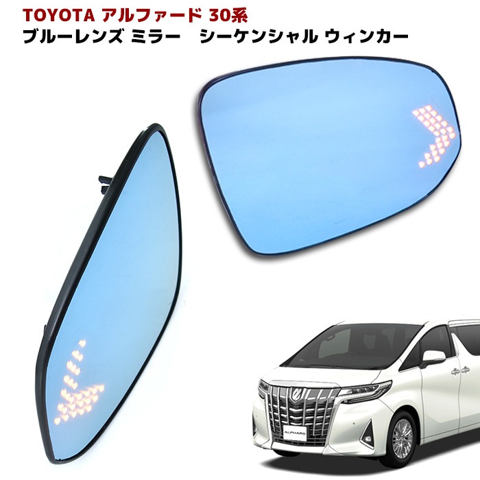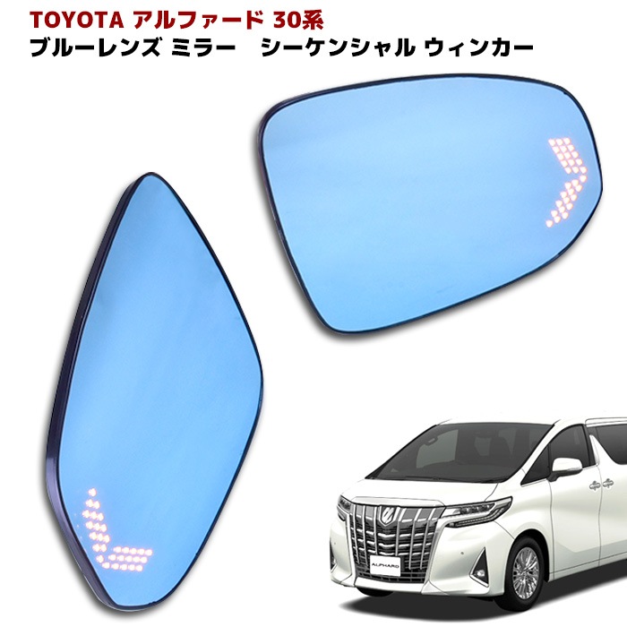 30系 アルファード ヴェルファイア サイド ミラー ドア ミラー ブルー レンズ シーケンシャル ウィンカー ミラーヒーター 左...