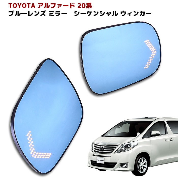 20系 アルファード ヴェルファイア サイド ミラー ドア ミラー ブルー レンズ LED シーケンシャル ウィンカー 左右 流れ...