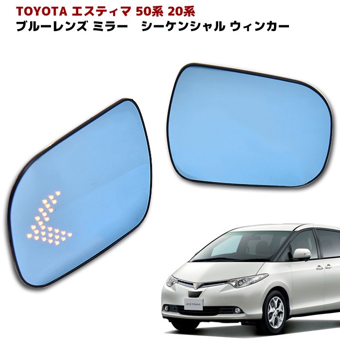 50系 20系 エスティマ サイド ミラー ドア ミラー ブルー レンズ LED シーケンシャル ウィンカー 左右 流れる ウイン...
