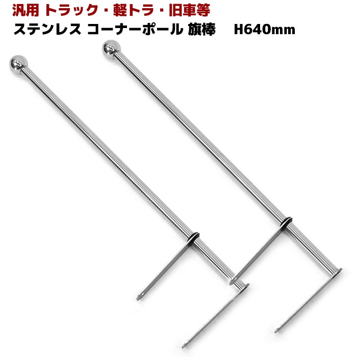 汎用 トラック 旗棒 フラッグ棒 64cm メッキ コーナー ポール バンパー ポール 2本 旧車 レトロ 走り屋 デコトラ ステ...