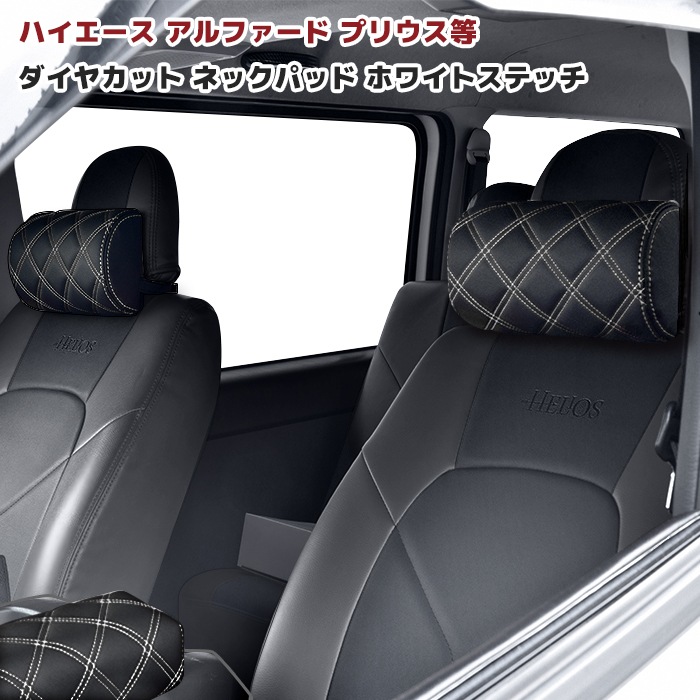 汎用 ネックパッド ダイヤカット ステッチ ホワイト 2個セット ハイエース キャラバン プリウス ジムニー アルファード カム...