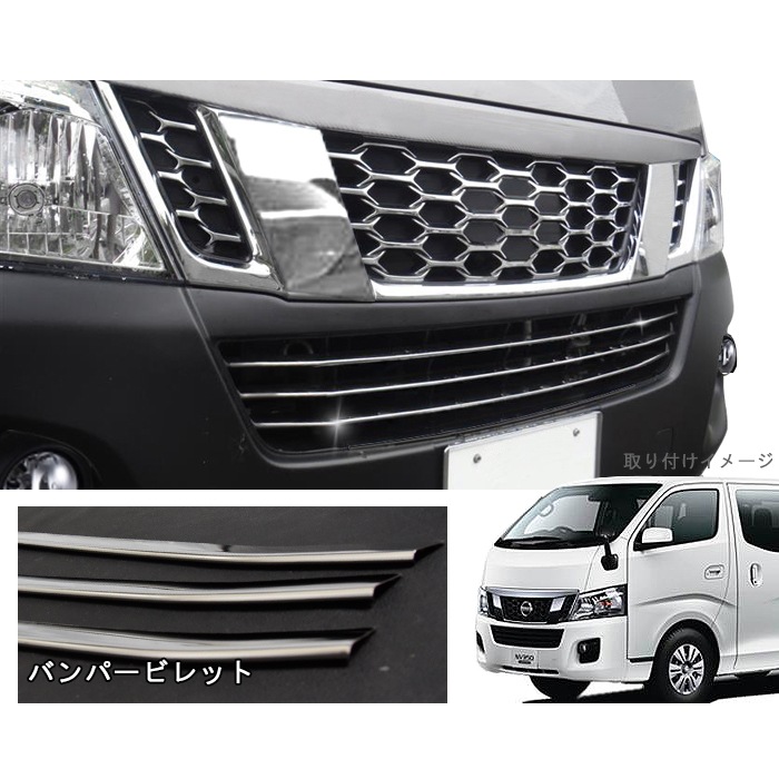 キャラバン NV350 前期 標準 フロント バンパー グリル カバー ステンレス 3枚セット バンパー ビレット E26