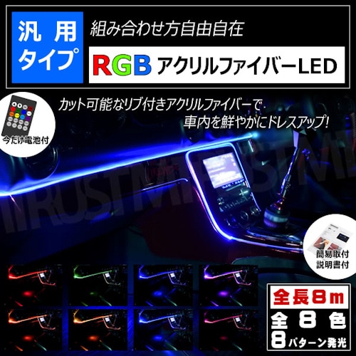 RGB アクリル ファイバー チューブ ライト LED 8m 8色 リブ付 カット可能 リモコン式【レッド グリーン ブルー ピン...