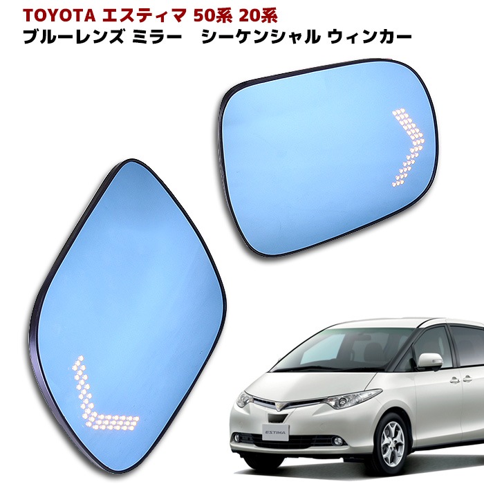 50系 20系 エスティマ サイド ミラー ドア ミラー ブルー レンズ LED シーケンシャル ウィンカー 左右 流れる ウイン...