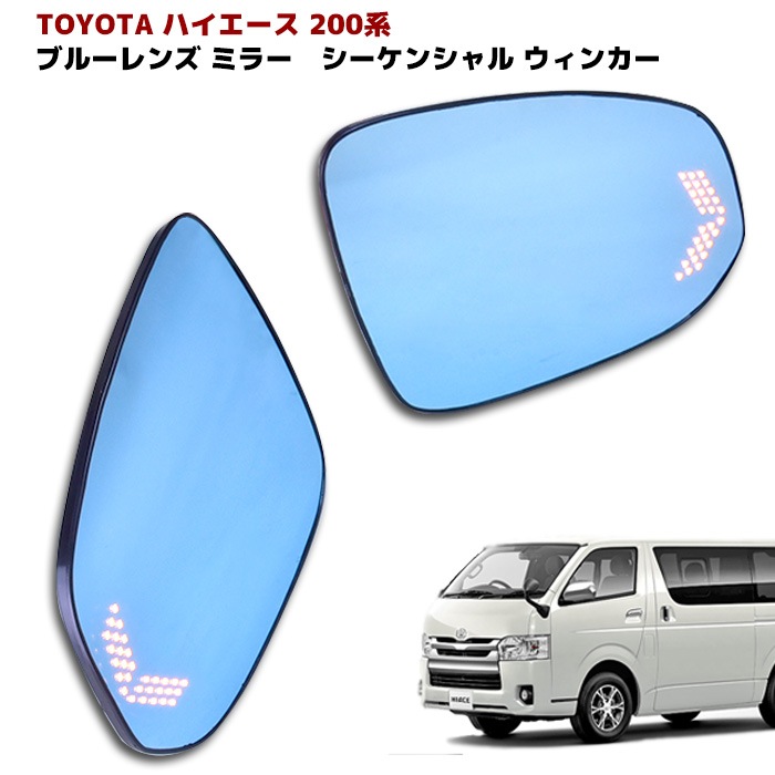 ハイエース 200系 サイド ミラー ドア ミラー ブルー レンズ シーケンシャル ウィンカー ミラー ヒーター 対応 左右