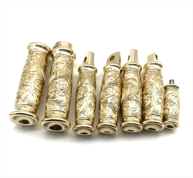 手彫り 真鍮 ハンドル グリップ ステップ シフトペグ セット ハーレー J175011